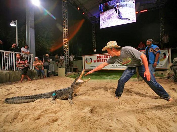 Crocodiles are very fast over short distances, even out of water. Since crocodiles feed by grabbing and holding onto their prey, they have evolved sharp teeth for tearing and holding onto flesh, and powerful muscles that close the jaws and hold them shut. These jaws can bite down with immense force, by far the strongest bite of any animal. The pressure of the crocodile's bite is more than 5,000 pounds per square inch (30,000 kPa), compared to just 335 pounds per square inch (2,300 kPa) for a rottweiler, 400 pounds per square inch (2,800 kPa) for a large great white shark, 800 pounds per square inch (6,000 kPa) to 1,000 pounds per square inch (7,000 kPa) for a hyena, or 2,000 pounds per square inch (10,000 kPa) for a large alligator. The jaws are opened, however, by a very weak set of muscles. Crocodiles can thus be subdued for study or transport by taping their jaws or holding their jaws shut with large rubber bands cut from automobile inner tubes. They have limited lateral (side-to-side) movement in their neck.