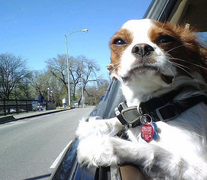 Dog With His Head Out Of The Car Window