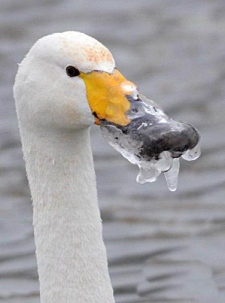 Rescuing Swan With A Frozen Beak