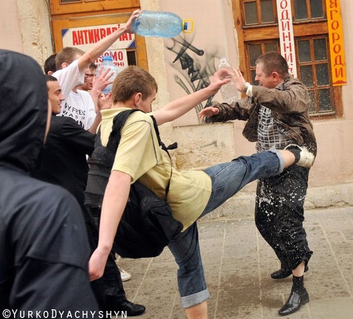 Dyngus Day or Wet Monday (Polish Śmigus-Dyngus or lany poniedziałek) is the name for Easter Monday in Poland. In the Czech Republic it is called velikonoční pondělí or pomlázka. In Slovakia veľkonočný pondelok (Easter Monday) is called Šibačka/Polievačka or Oblievačka. too. All countries practice a unique custom on this day. In Poland, Slovakia, and the Czech Republic traditionally, early in the morning boys awake girls by pouring a bucket of water on their head and striking them about the legs with long thin twigs or switches made from willow, birch or decorated tree branches; however, the earliest documented records of Dyngus Day in Poland are from the 15th century, almost half a millennium after Poland adopted Christianity. Benedykt Chmielowski in Nowe Ateny cite after "Carolo Berthold" that this ritual was already in custom in 750, 250 years before Poland officially adopted Christianity. One theory is that Dyngus originates from the baptism on Easter Monday of Mieszko I (Duke of the Polans, c. 935–992) in 966 AD, uniting all of Poland under the banner of Christianity. Dualism and "twins" are featured in Slavic pre-Christian paganism. Dyngus and Śmigus were twin pagan gods; the former representing water and the moist earth (Dyngus from din gus – thin soup or dingen – nature); and the later representing thunder and lightning (Śmigus from śmigać or to make a whooshing sound). In this theory, the water tradition is the transformation of the pagan water god into the Christian baptism. The custom of pouring water was an ancient spring rite of cleansing, purification, and fertility. It is alleged that the pagan Poles bickered with nature/Dyngus by means of pouring water and switching with willows to make themselves pure and worthy of the coming year. Others have suggested that the striking tradition is the transformation of the ritual "slap" of Christian confirmation. However, still others suggest that the Śmigus tradition is actually simply a youthful recapitulation of a Good Friday Polish tradition, in which parents wake their children with switches from twigs, saying the words of a Lent prayer "God's wounds" – "Boże rany".