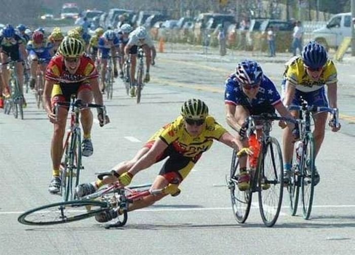 Track bicycles do not have dedicated brakes. Brakes are not required for riding on a track because all riders ride in the same direction around a track which does not necessitate sharp deceleration. Track riders are still able to slow down because all track bicycles are fixed-gear, meaning that there is no freewheel. Without a freewheel, coasting is impossible, so when the rear wheel is moving, the crank is moving. To slow down, the rider applies resistance to the pedals – this acts as a braking system which can be as effective as a friction-based rear wheel brake, but not as effective as a front wheel brake.