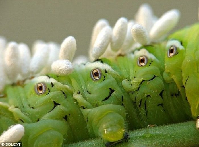 Plants have evolved poisons to protect themselves from herbivores and some caterpillars have evolved countermeasures and eat the leaves of these toxic plants. In addition to being unaffected by the poison, they sequester it in their body, making them highly toxic to predators. These chemicals are also carried on into the adult stages. These toxic species, such as the Cinnabar moth (Tyria jacobaeae) and monarch (Danaus plexippus) caterpillars, usually advertise themselves with brightly striped or coloured in black, red and yellow—the danger colors (called aposematism). Any predator that attempts to eat a caterpillar with an aggressive defence mechanism will learn and avoid future attempts. Some caterpillars regurgitate acidic digestive juices at attacking enemies. Many papilionid larvae produce bad smells from extrudable glands called osmeteria.
