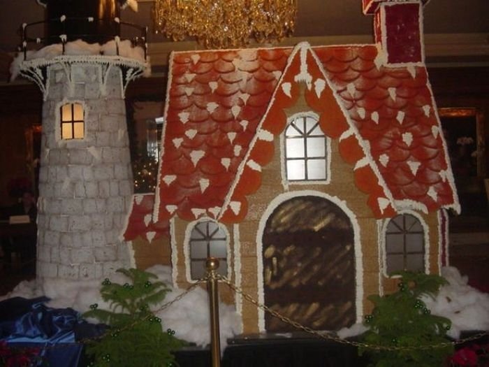 The harder German-style Gingerbread is often used to build gingerbread houses similar to the "witch's house" encountered by Hansel and Gretel. These houses, covered with a variety of candies and icing, are popular Christmas decorations, often built by children with the help of their parents. This form of Gingerbread houses is also popular in Norway. For the last 19 years (as of 2009) the people ofBergen have been trying to make the world's largest gingerbread house city. It's free for every child under the age of 12 to make their own house with the help of their parents.