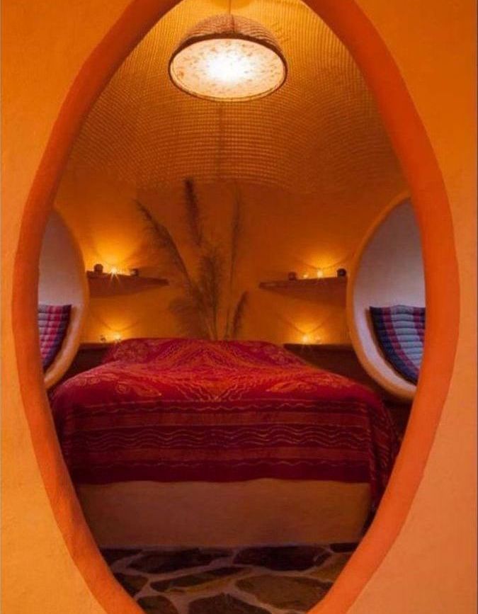 With Hajjar's guidance and design ideas, and Steve's son-in-law Tao's masonry skills, Steve created his own dome and painted in six weeks. The cost for the basic structure was under $6000. It took a few more weeks to add the details, such as doors, screens, pond, upstairs structure, stonework and landscaping. All this, including furnishings, was under $3000, bringing total cost to about $9,000.