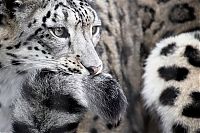 leopard playing with snow